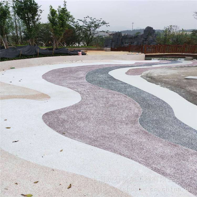 胶粘石,又名胶筑彩石、胶筑透水彩石等,是一种由改性树脂胶作为粘接剂,配以各种天然石子、彩砂、彩色石子等骨料,